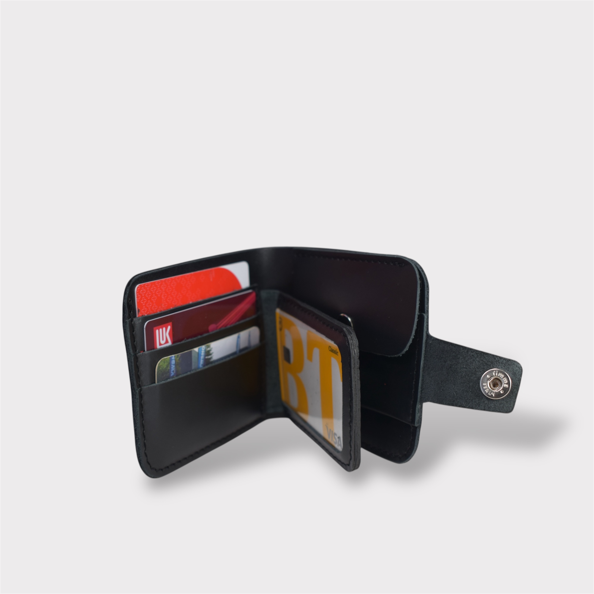 Designul bifold oferă un format compact, ușor de purtat în buzunar sau în geantă, fără a compromite spațiul interior. Dispune de compartimente bine organizate pentru carduri, bancnote și documente esențiale, oferind acces rapid și eficient la conținut.
